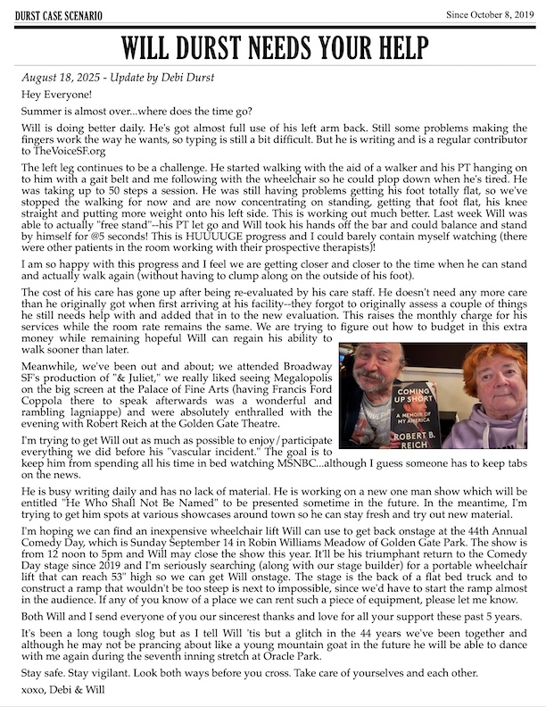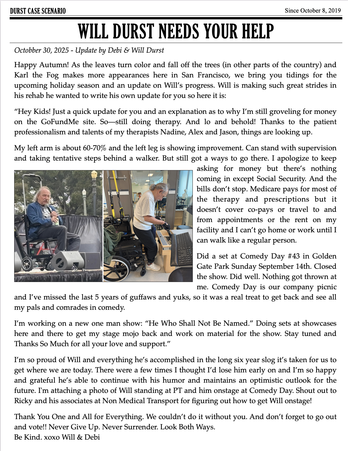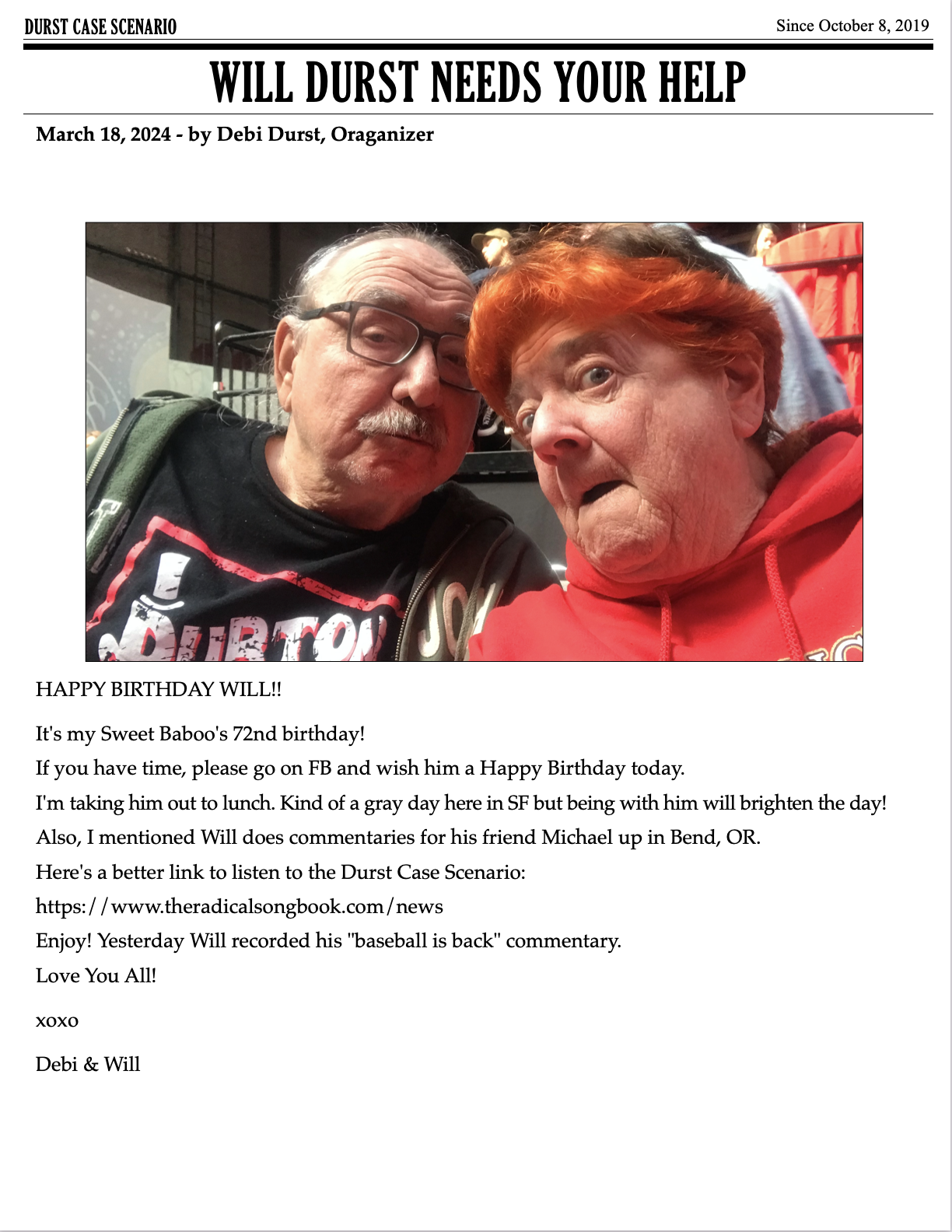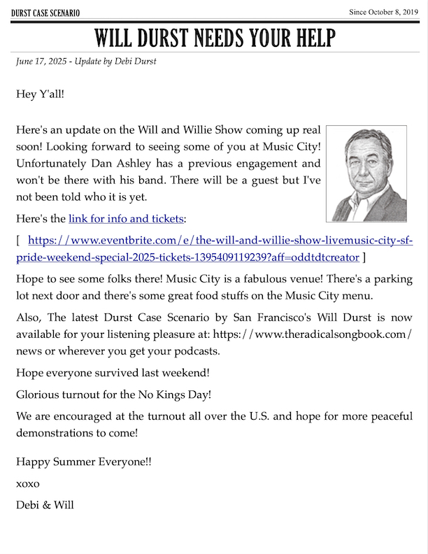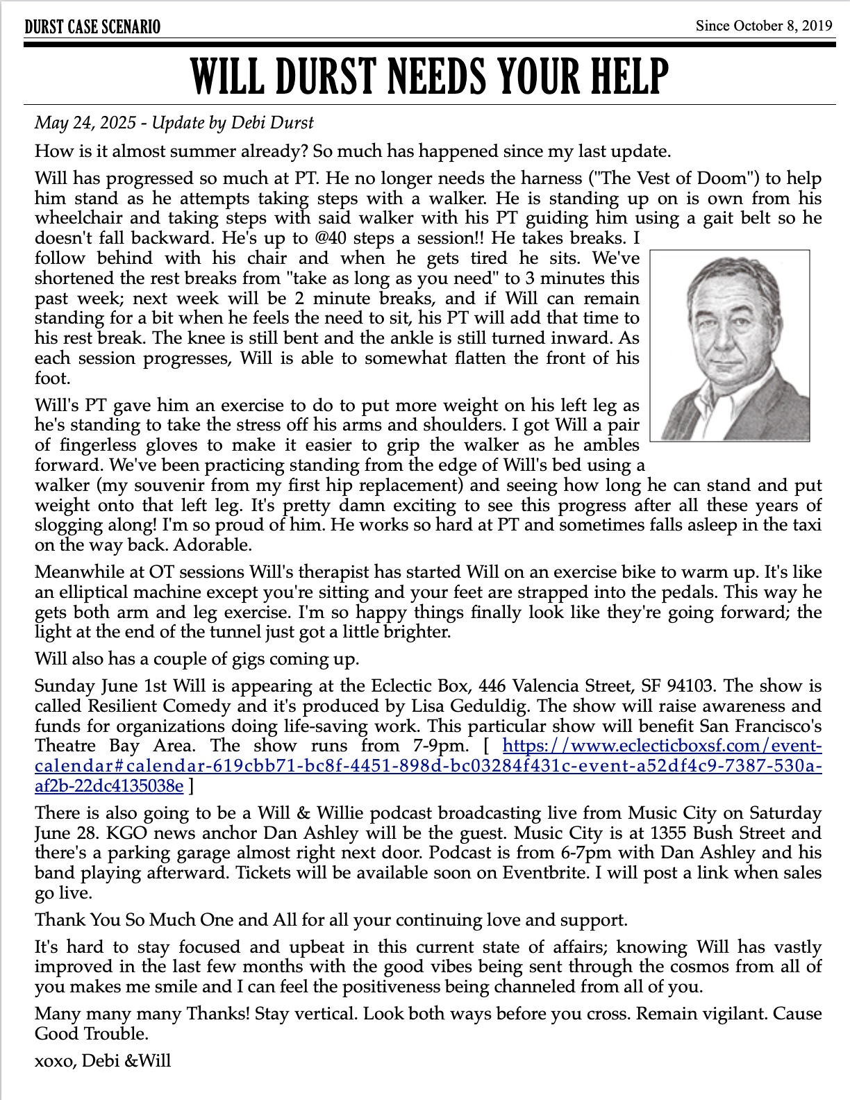 Spring is in the air! Hello everyone! Debi Durst here with your latest Will Durst update.